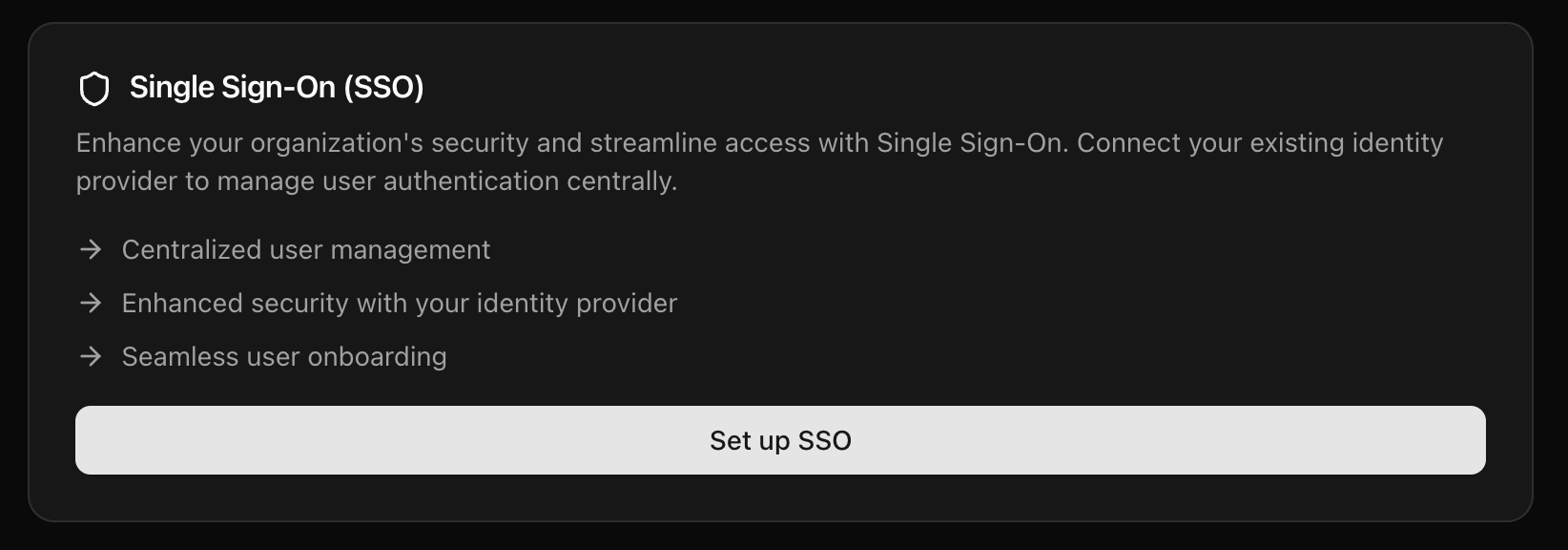 Find the Single Sign-On (SSO) Configuration panel, and click "Set up SSO":